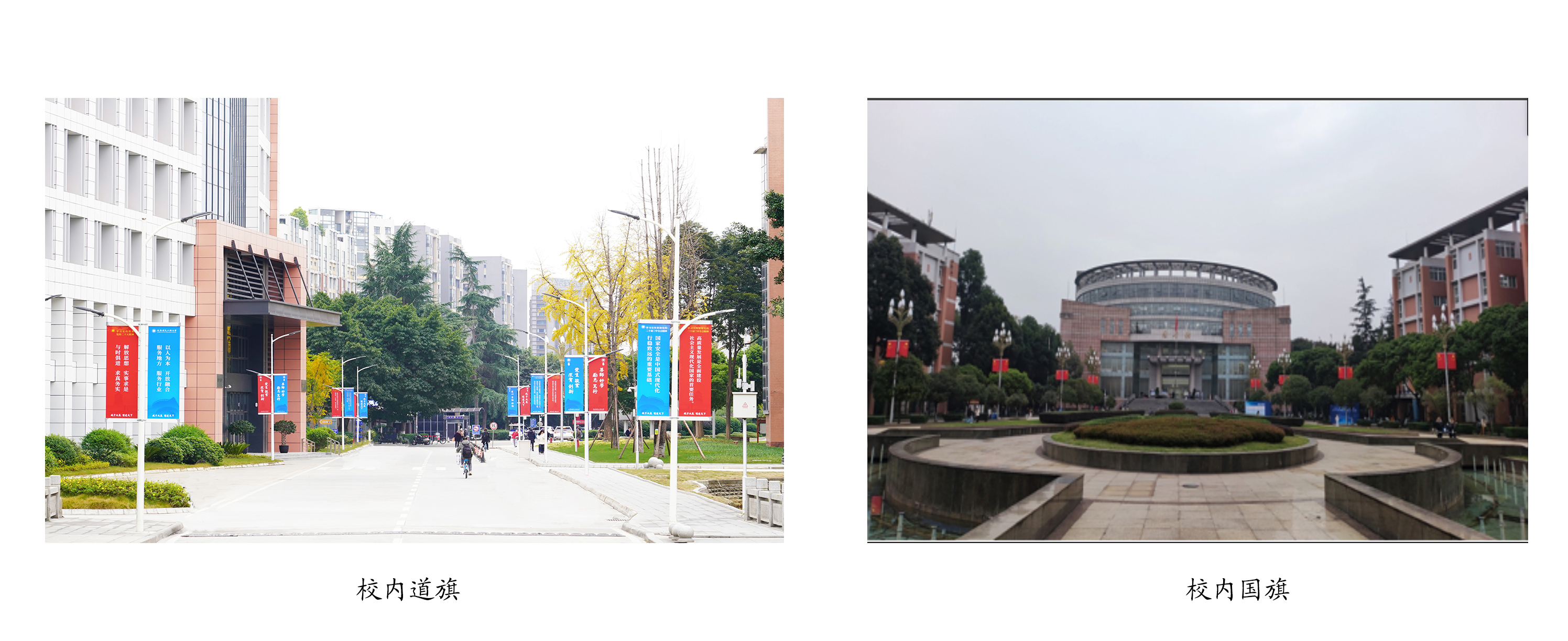 1.围绕中心,营造良好育人氛围。坚定文化自信,深刻挖掘运用“成信精神”内涵。围绕学校中心工作,通过学校官网主图、宣传橱窗海报、横幅、道旗、LED大屏、专题网站等多种形式,在校内营造良好的文化氛围。中华人民共和国成立75周年庆祝氛围营造,道路灯杆上安装180幅国旗;重大活动喷绘、横幅宣传50余次。