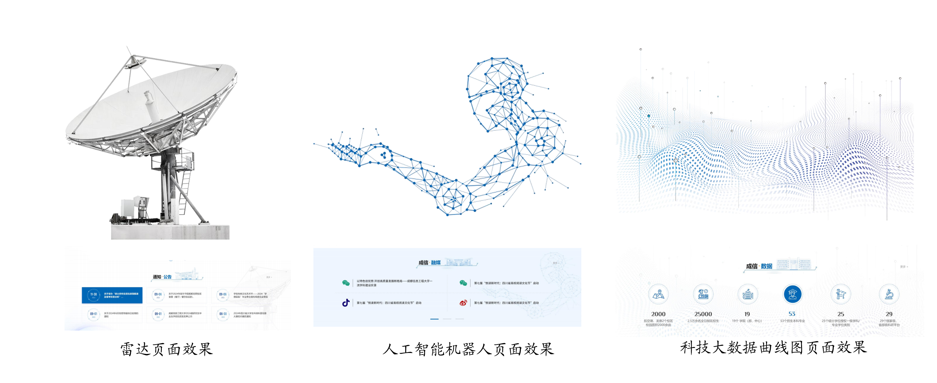 2024年新版官网符合审美规范、体现学校特色,彰显“以人为本,追求卓越”的教育理念,展示良好对外形象,页面布局大气美观、文化特色浓郁,将成信蓝作为版面主色调,版头导航栏突出显示校训精神。