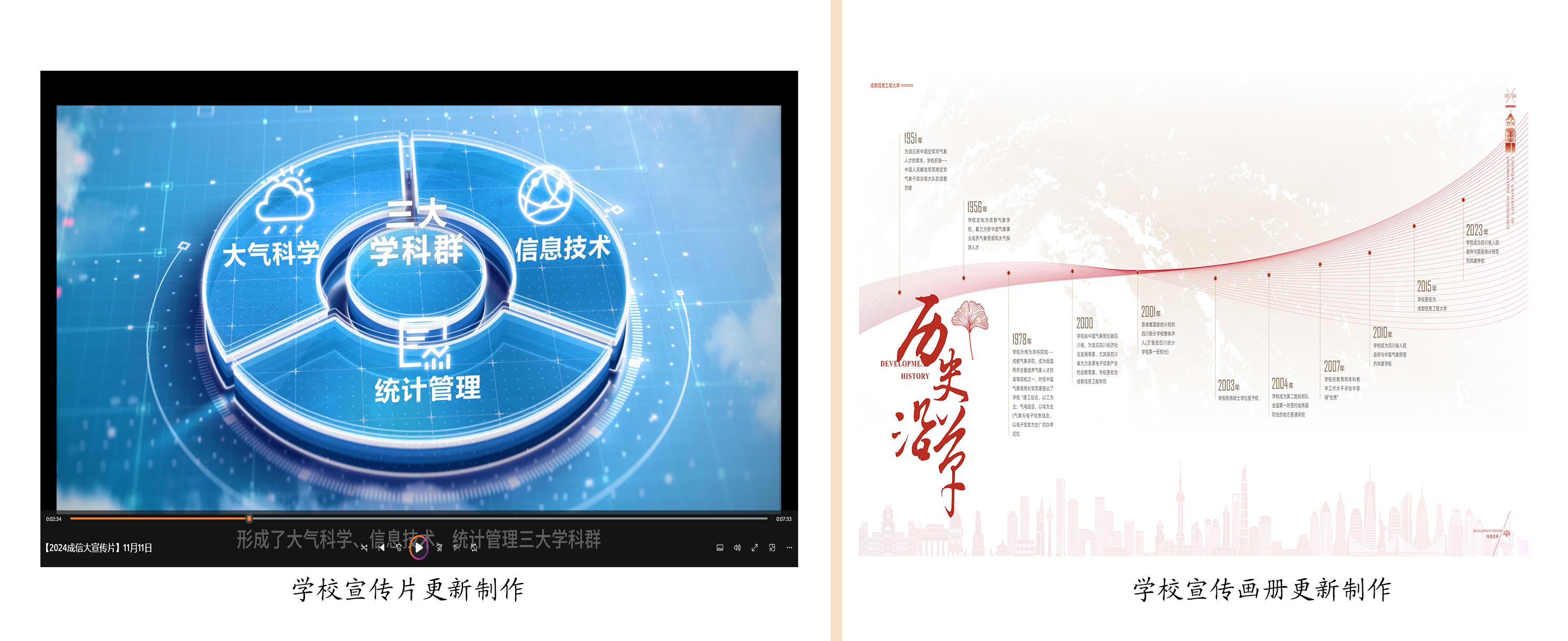 将学校宣传片、大学精神、校歌、校徽、成信印象(校园风景+文化活动图片和视频影像)等内容聚合在成信文化栏目凝练展示,彰显成信文化、精神内涵、学校发展历程和综合改革成果。