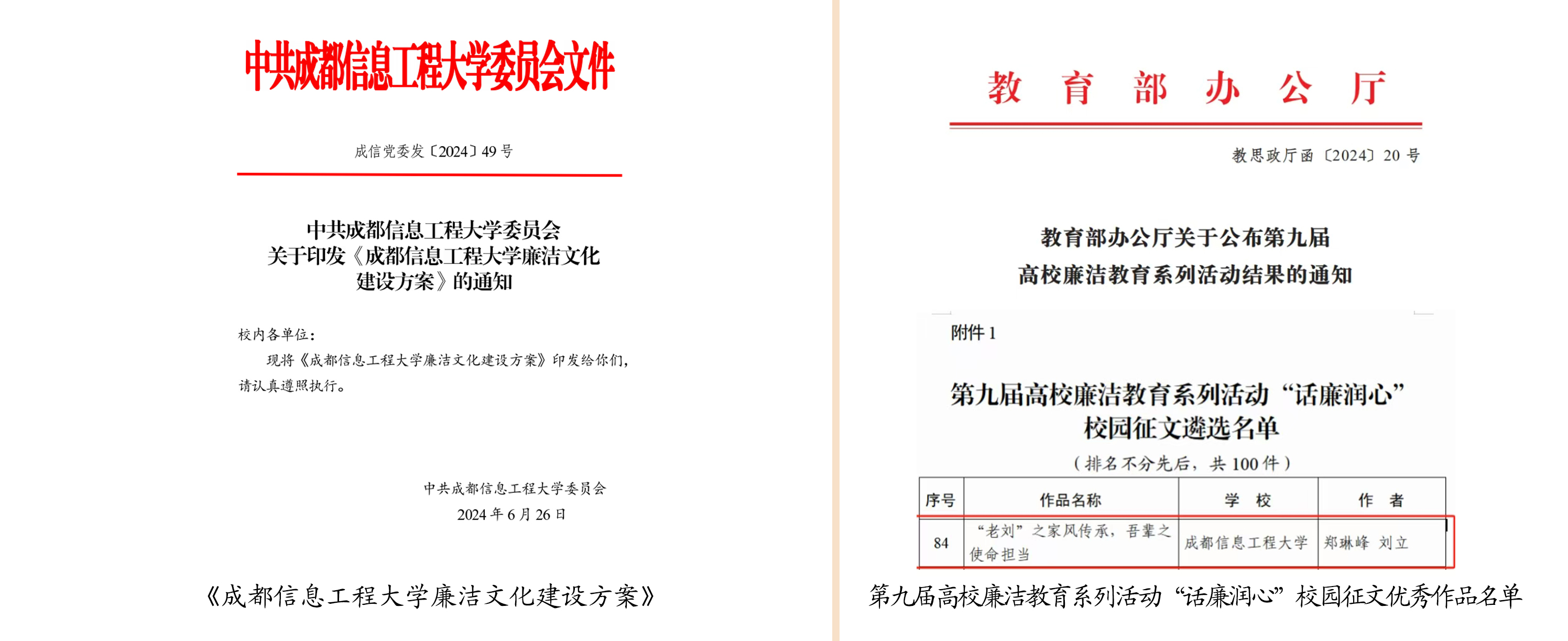 2.多点发力,推进校园文化专项建设。全面推进校园廉洁文化项目建设,联合纪委办公室发布《九州登录廉洁文化建设方案》,积极培育校园文化建设精品项目,制作学校廉洁文化宣传片,构建和维护风清气正政治生态和教书育人环境。加强文化作品推优活动,学校师生团队原创文化音乐视频《炽热青春》,分别获得第七届四川大学生网络文化节微视频组四川省二等奖和校园歌曲组四川省三等奖,《大运“小青椒”工作日志》获动漫组四川省二等奖。宣传部指导并推荐的文章《“老刘”之家风传承,吾辈之使命担当》获教育部第九届高校廉洁教育系列活动“话廉润心”校园征文优秀作品,该作品将在央视网、中国大学生在线、中国教育发布等平台进行展播。