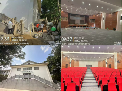 完成两校区260余间多媒体教室强弱电改造,更换教室课桌椅12098套及护眼灯4890组,清洗窗帘1763副,清洗玻璃4572.74㎡,改造龙泉二教厕所,提升了办学条件、改善了学习环境。全方位升级改造成信礼堂,进一步改善了举办学术研讨会议、学生文体活动等场所条件。成信礼堂自10月15日正式启用以来,成功保障了庆祝中华人民共和国成立75周年党史专题讲座等20余项大型活动。