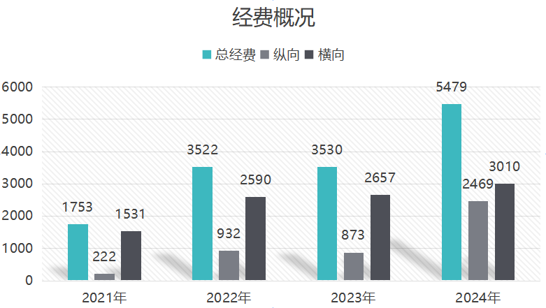 从科研经费总量看,从2021年的1753万元迅速增长为2024年的5479万元,年度到账总额在4年内增长了3倍。
