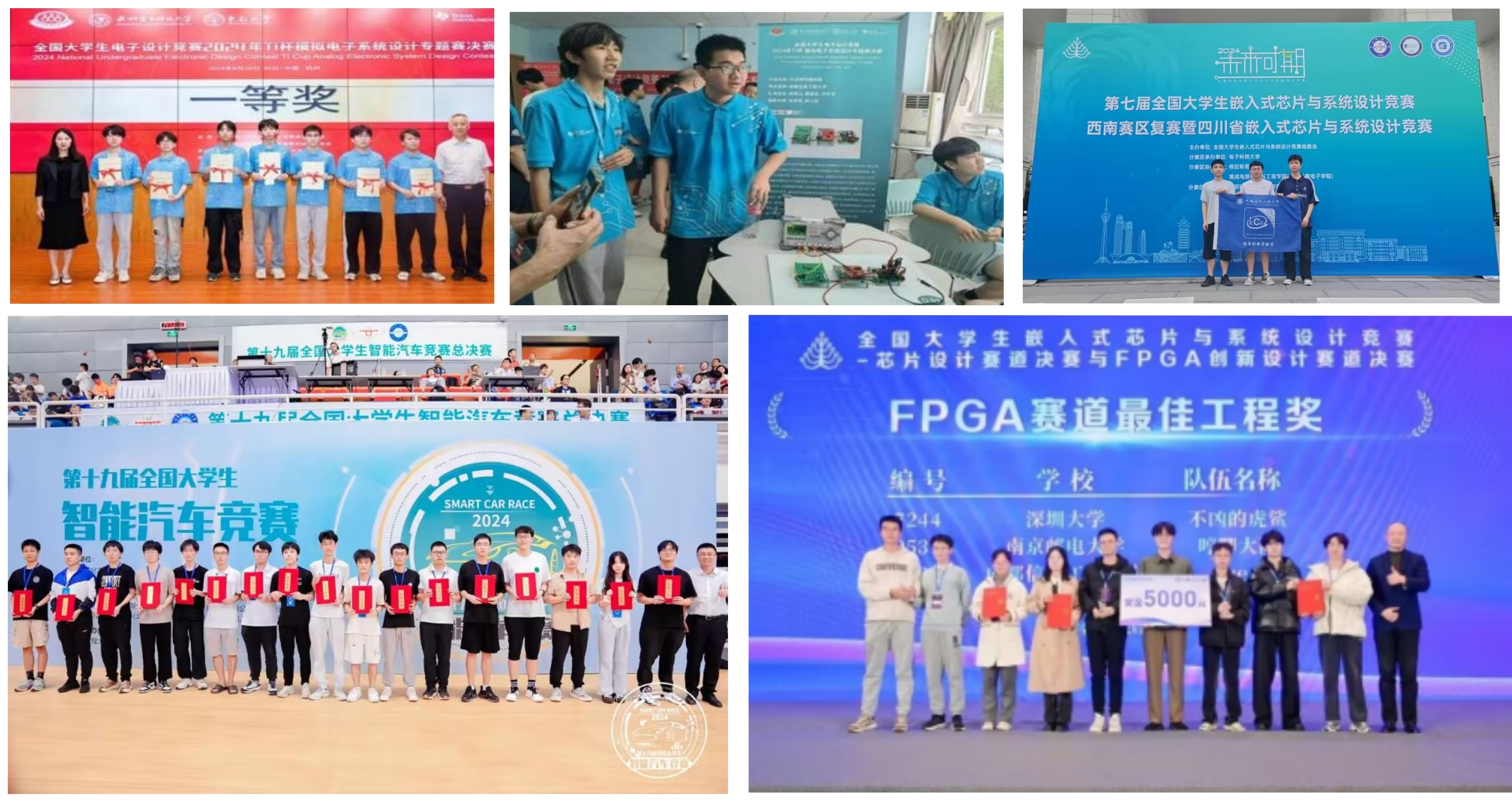 从获奖质量看,在2024年全国大学生电子设计竞赛TI杯模拟电子系统设计专题赛中通信学生团队获得全国一等奖(全国仅13项,全校唯一),并代表学校接受赛事媒体采访;在全国大学生智能汽车竞赛中,越野组别获得全国总冠军并获得电子类媒体采访;在第十八届iCAN大学生创新创业大赛中,我院“银杏chip”学生团队获创新赛道国家级一等奖(全国共800支团队晋级总决赛)。