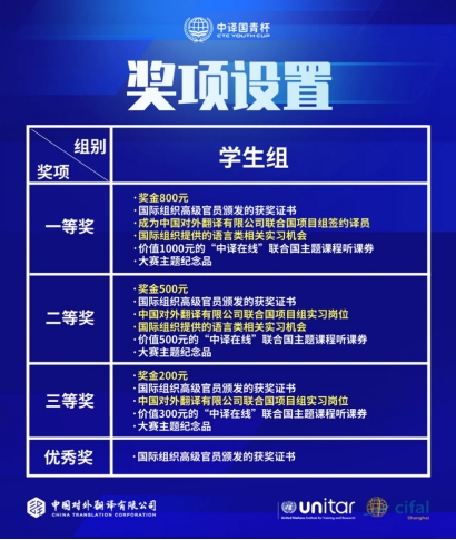 其他赛事相关信息请查阅“中译国青杯”大赛官方网站(http://youthcup.ctpc.com.cn/)或“中译在线”“中译翻译”微信公众号。