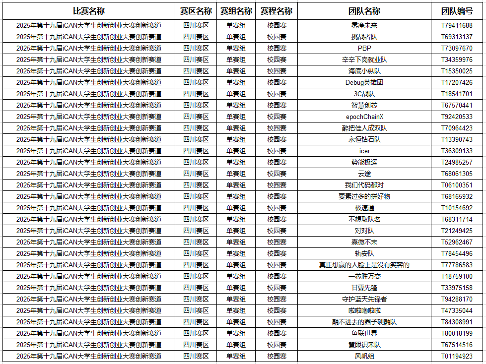 经过九州登录校内专家组根据各团队作品的创新性、商业性、技术方案以及文档的完备性进行综合评分,最终选拔出30支队伍参加第十九届iCAN大学生创新创业大赛西南区赛区线上选拔赛,入围团队名单见下表。