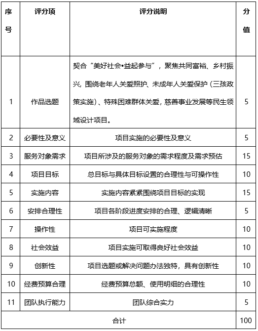 2.项目设计方向。聚焦共同富裕、乡村振兴,围绕老年人关爱照护、未成年人关爱保护(三孩政策实施)、特殊困难群体关爱(低保对象、残疾人等)、慈善事业发展等民生领域设计项目。