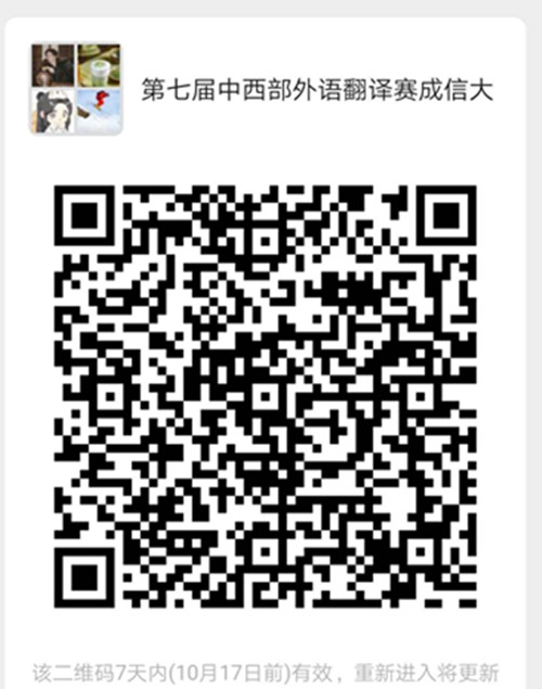 本届竞赛有英语、日语、法语、德语、俄语等不同语种,有专业组,非专业组,英语大学b组,等不同组别。欢迎高校在校学生,老师和社会外语从业者爱好者报名。因疫情特殊时段本届大赛只举行笔译组别,初赛时间11月1日周日下午两点。报名微信:cd18011395983,QQ:626595451。欢迎扫码进微信群咨询、报名填写表格。比赛陆续接受咨询互动。