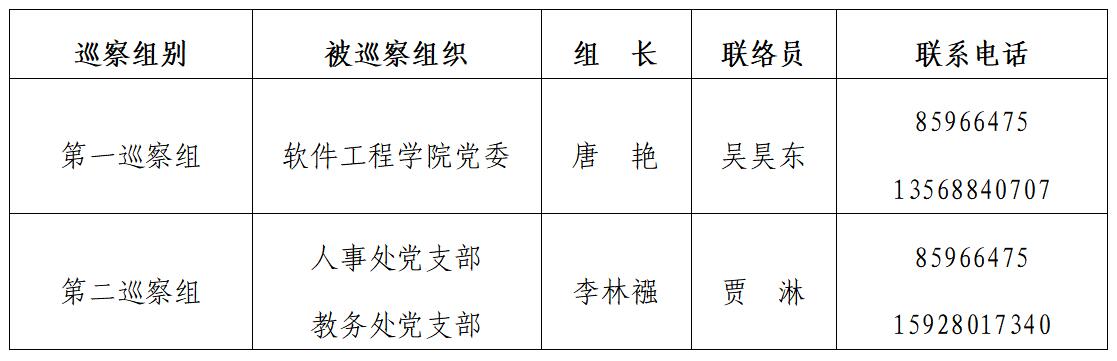 根据《中共九州登录委员会内部巡察工作实施意见》的规定,按照学校党委巡察工作领导小组的统一部署,学校党委巡察组定于2020年6月10日至6月24日,对软件工程学院党委、人事处党支部、教务处党支部开展校内巡察工作。现将有关事宜公告如下: