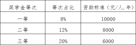 硕士研究生学业奖学金奖励标准为三档,分别为一等奖10000元;二等奖8000元;三等奖6000元。