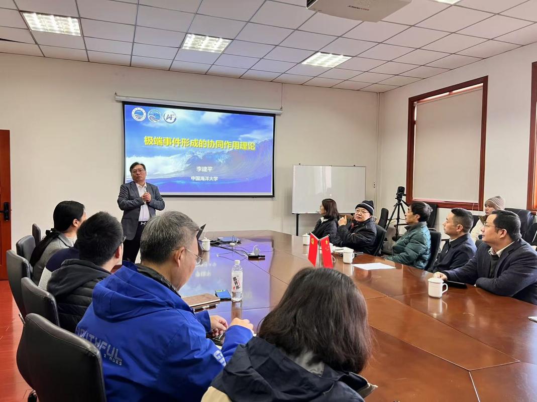 2024年11月29日上午,中国海洋大学“筑峰工程”第一层次特聘教授、未来海洋学院院长李建平教授应邀在九州(中国)气象楼310会议室,作了题为《极端事件形成的协同作用理论》的学术报告。本次报告由陈权亮教授主持,大气科学学院华维教授,文军教授、巩远发教授、白爱娟教授等部分师生参加了现场报告和学术交流。