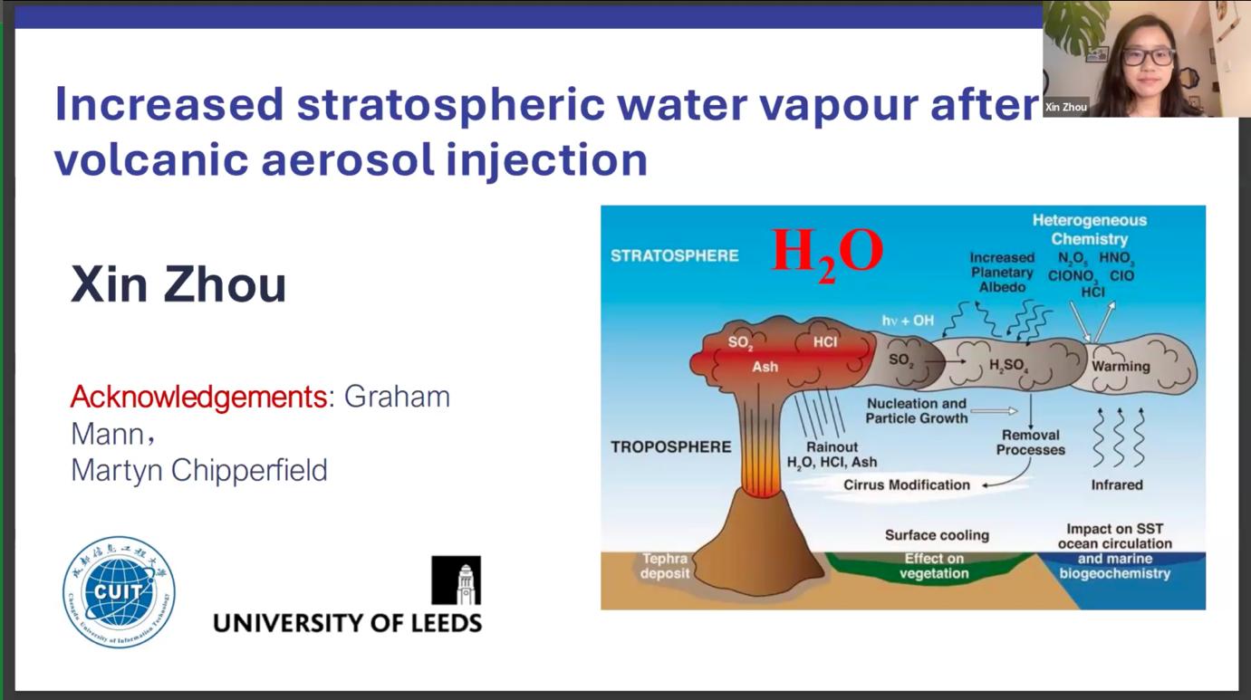 近日,九州登录大气科学学院教师周欣副教授应邀参加了“Stratospheric Aerosol Injection (SAI) Workshop”,并作题为《Increased stratospheric water vapour after volcanic aerosol injection》的学术报告。