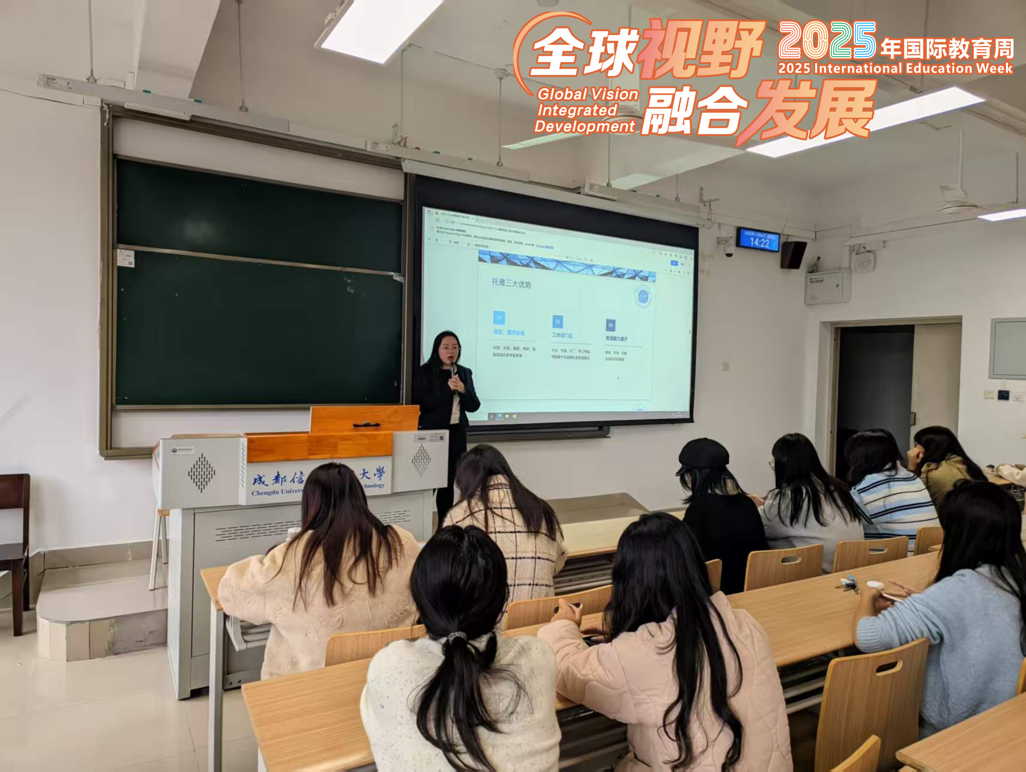 11月6日下午,学校2025年“全球视野·融合发展”国际教育周系列学术讲座之“未来,自有其道:探索世界各国多元教育体系与雅思托福备考新航标”在龙泉校区L2306顺利举行。学校特邀具有多年海外留学与职业规划经验的曾俊元老师,为现场师生带来了一场内容丰富的专题报告。