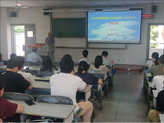 【本网讯】5月30日下午,中国气象科学研究院研究员赵平在航空港1309教室,作题为《第三次青藏高原大气科学试验进展》的学术报告。本次报告由大气科学学院院长张宇教授主持,副院长华维教授、文小航教授等部分师生参加了现场报告和学术交流。