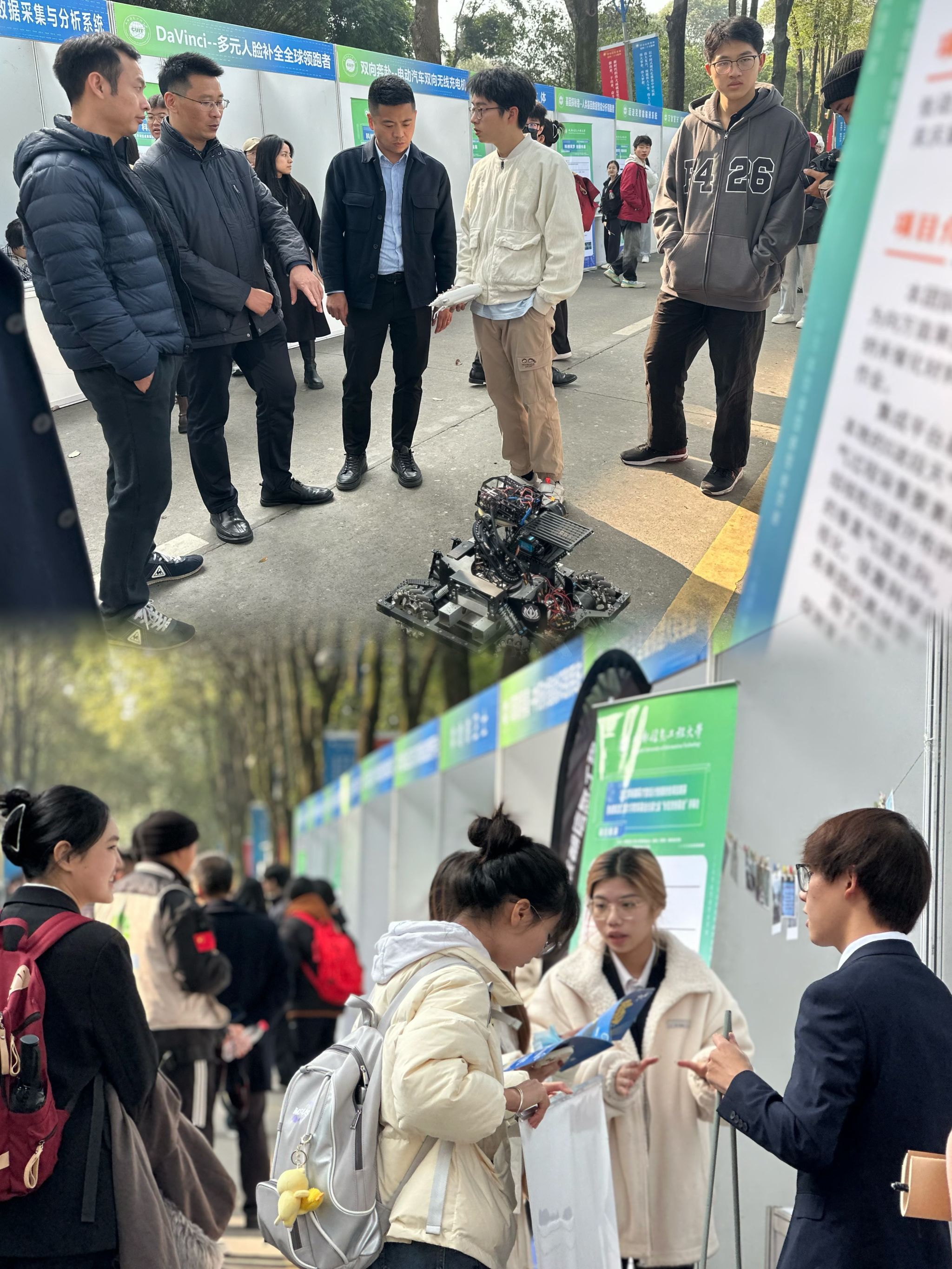 双创周启动仪式结束后,学校师生参观了学生双创成果展位。来自学校32个创新创业团队在成果展位上为师生讲解团队的创新创业成果。
