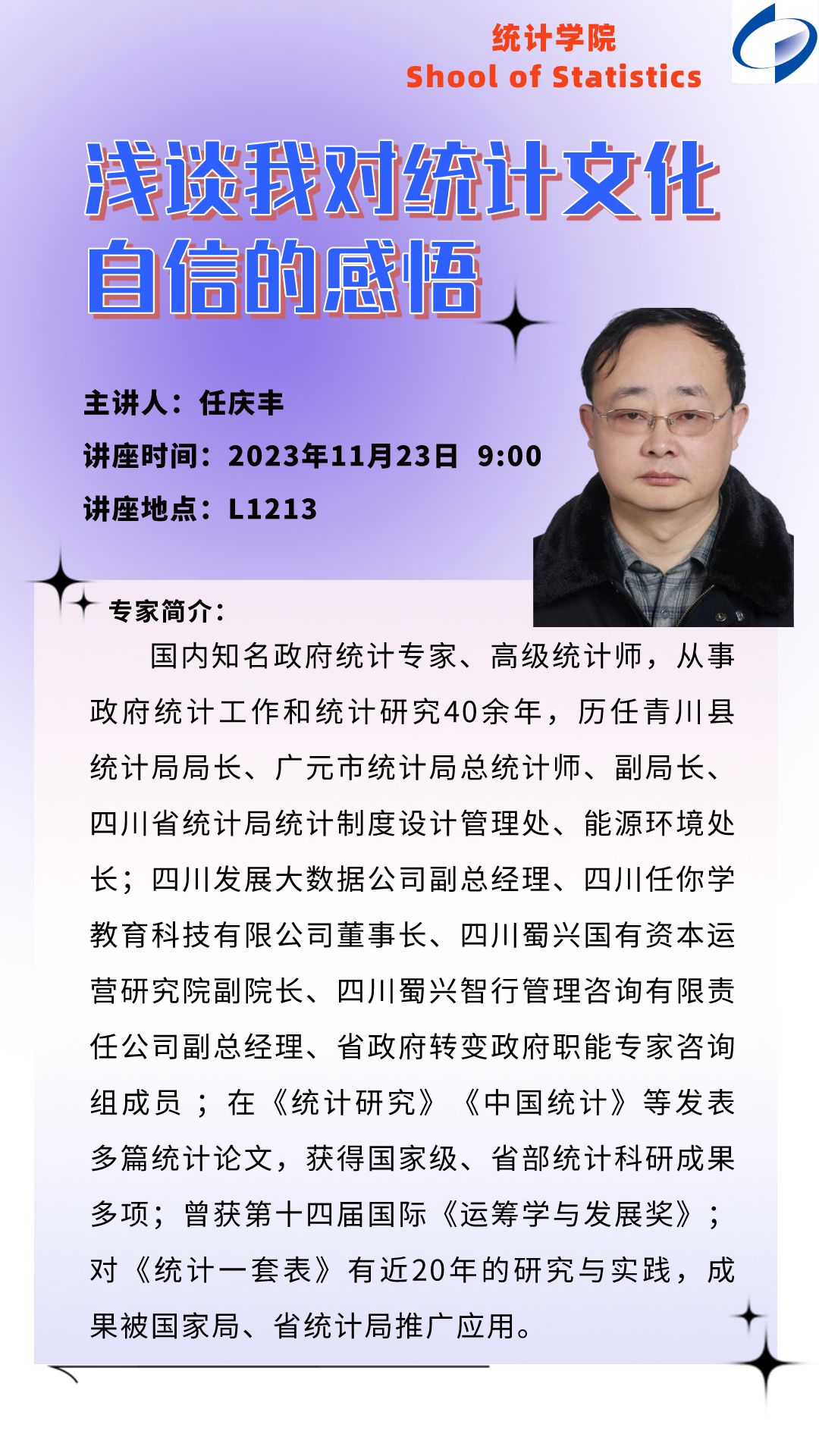 【讲座预告】浅谈我对统计文化自信的感悟