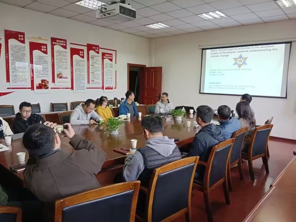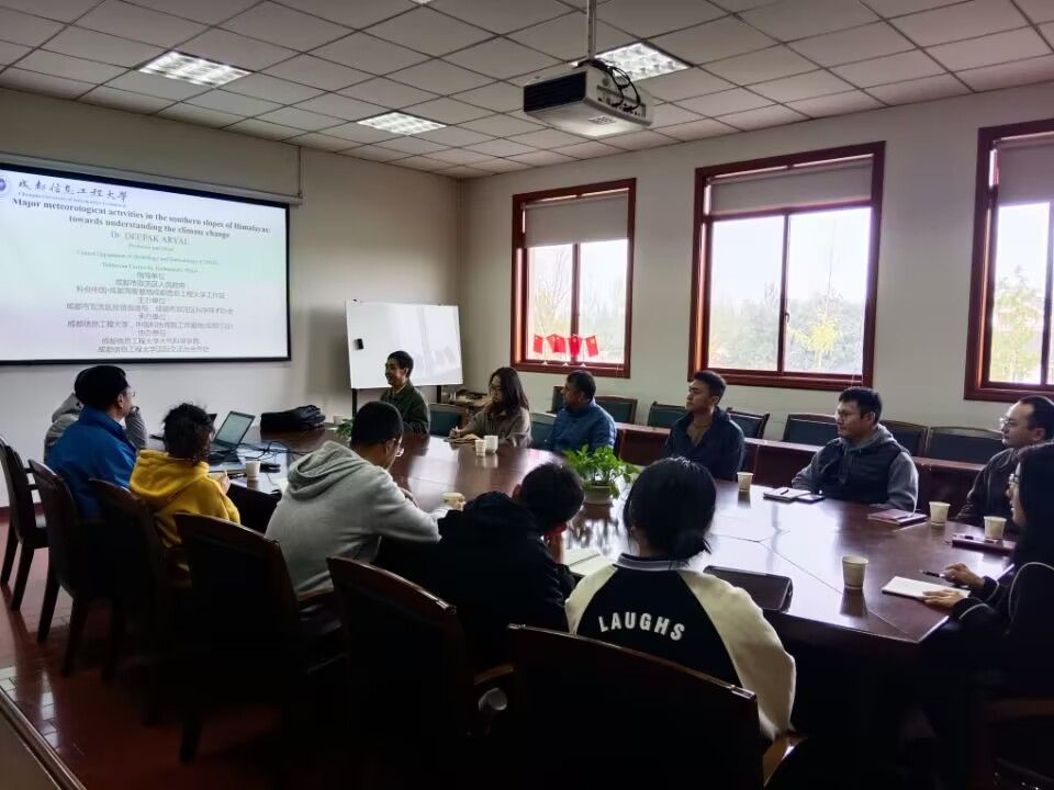【本网讯】11月13日上午,尼泊尔科技部院士、特里布文大学Deepak教授应大气科学学院的邀请,在气象楼310会议室作题为《喜马拉雅山南坡的主要气象活动:对气候变化的理解》的学术报告。本次报告由高原大气与环境四川省重点实验室主任文军教授主持,大气科学学院赵勇教授、李茂善教授、文小航教授、宋敏红副教授、李金建副教授、杨泽粟副教授、樊晋副教授、林志强副教授、苏东生博士等教师及部分研究生参加会议。