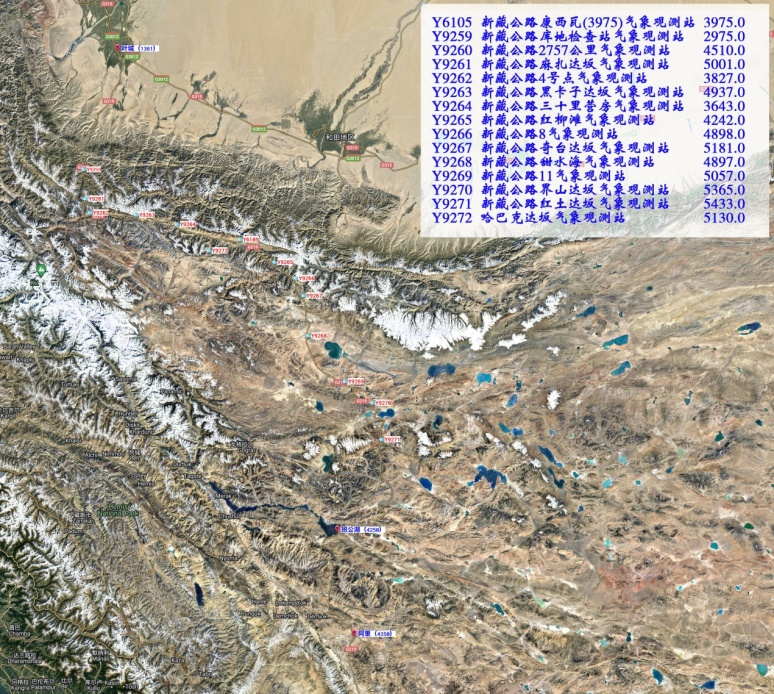 综合科考沿途气象站点分布图