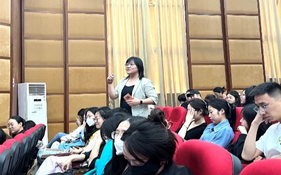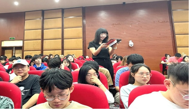 报告会会场上师生交流场景