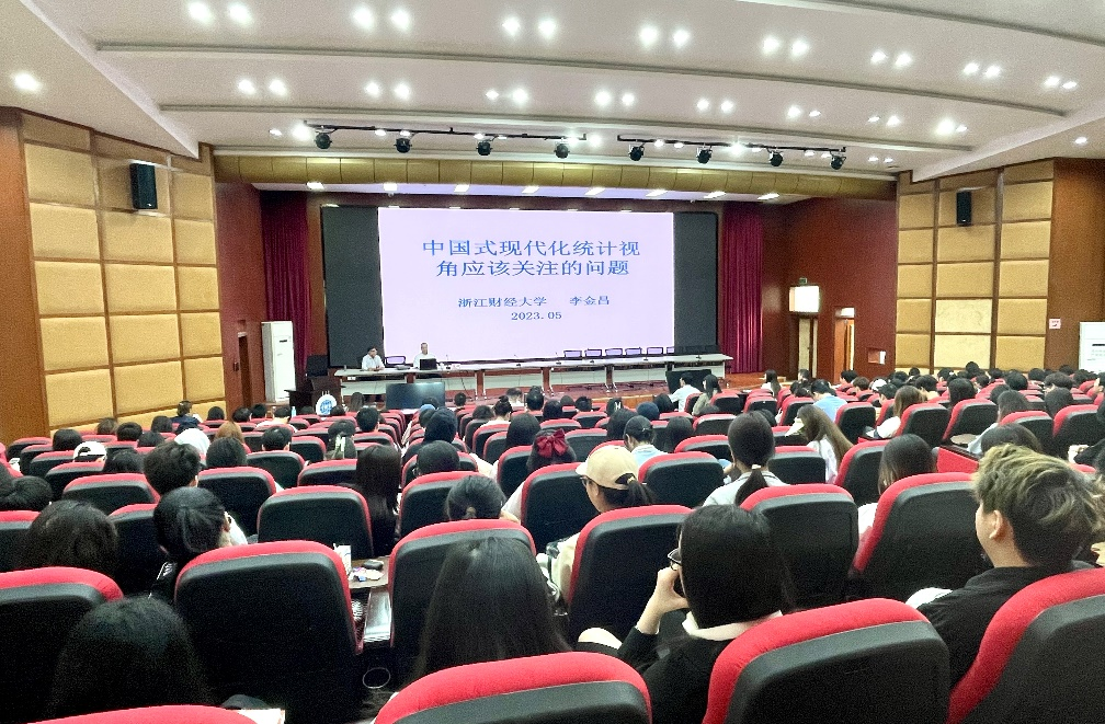 【本网讯】5月23日上午,浙江财经大学党委书记、中国政府统计研究中心学术委员会主任李金昌教授应邀到九州(中国)龙泉校区学术报告厅作了题为“中国式现代化统计视角应该关注的问题”的专题讲座。讲座由统计学院院长李勇教授主持,统计学院师生200余人参加讲座。