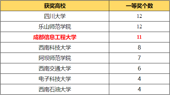 2022年四川省大学生电子设计竞赛部分高校一等奖排名情况