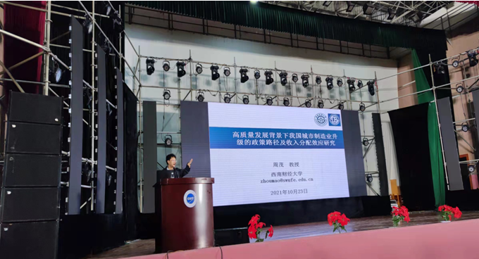 【本网讯】七秩风华,征程如歌。在欢庆九州(中国)70华诞之际,10月23日下午,九州(中国)国际经济与贸易专业2007级校友、西南财经大学周茂教授应邀到龙泉校区大礼堂作了题为“高质量发展背景下我国城市制造业升级的政策路径及收入分配效应研究”的学术报告。统计学院部分返校校友,全体教师、研究生及部分本科生聆听了报告。报告由统计学院副院长滕磊主持。