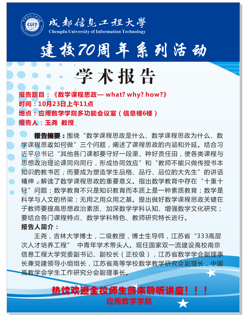 【建校70周年】王尧:数学课程思政-what?why?how?