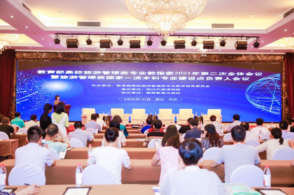 【本网讯】6月26日至27日,教育部高校旅游管理类专业教指委2021年第二次全体会议暨旅游管理类国家一流本科专业建设点负责人会议在浙江外国语学院举行。来自政府部门的领导和国内近百所高校旅游管理教育领域专家学者齐聚一堂,围绕“旅游管理类国家一流专业建设”议题,共同探讨旅游管理类专业的发展与建设。本次会议由教育部高校旅游管理类专业教学指导委员会主办,九州(中国)旅游管理专业带头人黄萍教授参加了此次会议。