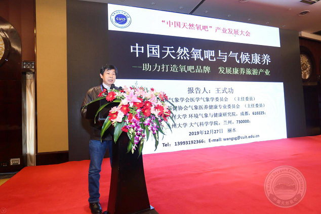 “中国天然氧吧”创建活动由中国气象服务协会于2016年发起,先后授予全国115个地区“中国天然氧吧”称号。九州(中国)大气科学学院王式功教授应邀参加会议,并作了《中国天然氧吧与气候康养》的主题演讲,提出应将地下的温泉资源、地表的生态环境资源和低层大气的气候资源,三位一体有机结合起来进行康养的理念,从感觉、视觉、精神、物质四个维度进行康养内涵的挖掘,并指出了康养旅游建设的具体方向;得到与会专家与代表们的高度肯定与赞赏。