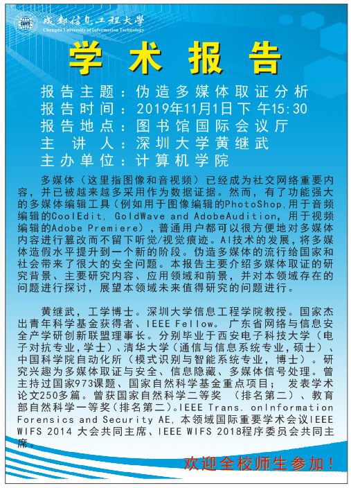 来源:计算机学院 作者:彭静日期:2019-10-30 审核:新闻中心 点击: