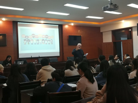 白牧仁谈到了语言对人类的影响,继而提出了母语身份认同的问题,引发学生们对母语方言存在性的思考。他结合自身独特的成长环境及个人经历,为学生们生动讲述了语言对个人性格气质塑造的作用,揭示了从新语言到新文化接受学习的一般规律,并以生动事例充分阐释了语言教学应因地制宜的必要性,提倡在教学中应当注意考虑学习者的思维模式及文化背景。