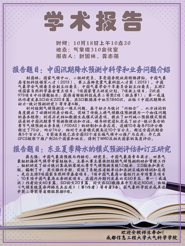 来源:大气科学学院 作者:尹欣日期:2018-10-16 审核:新闻中心 点击: