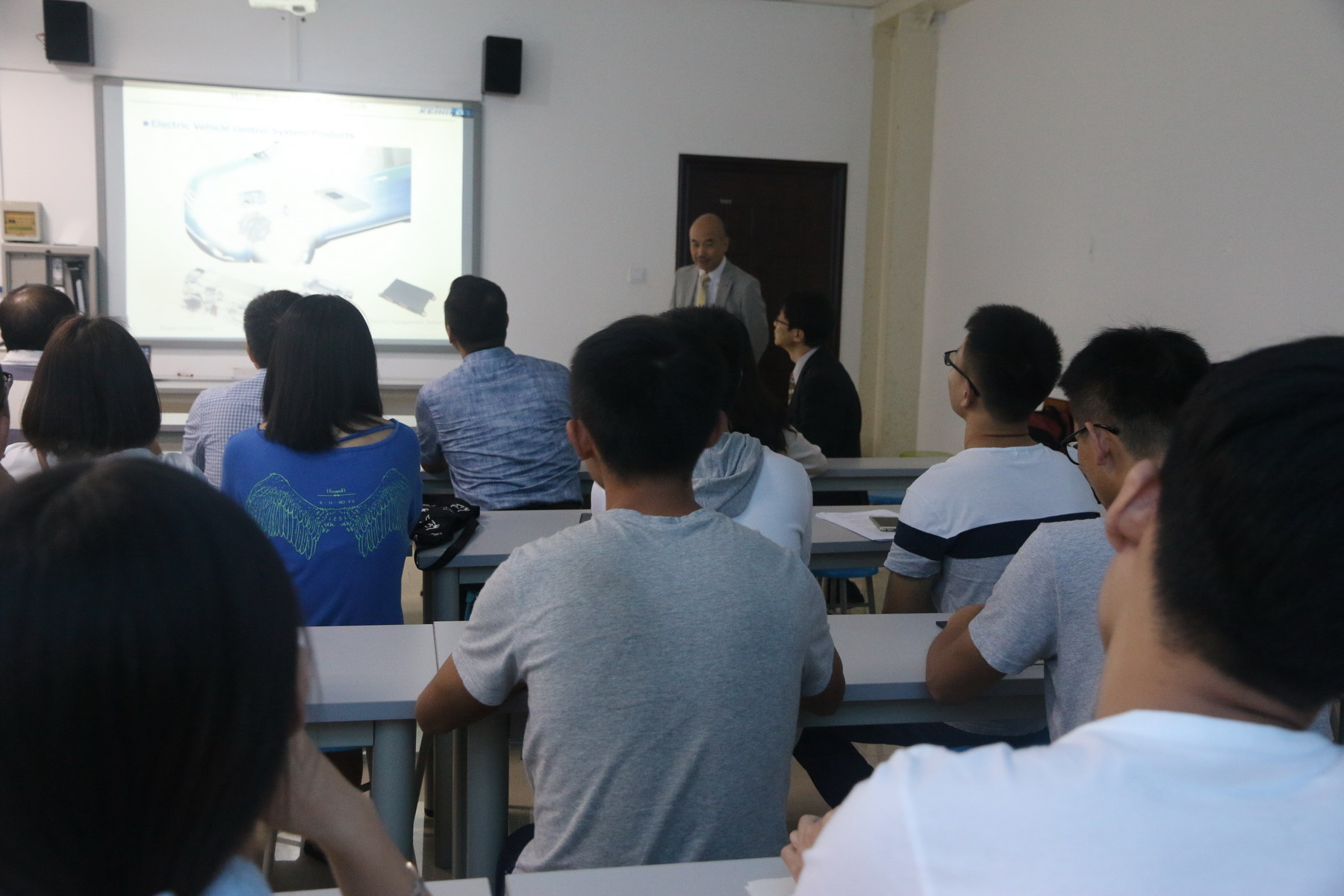 报告结束后,钵吕俊隆和袁方与师生进行了交流,沟通了一些对燃油汽车和电动车的看法。双方表示,今后将进一步加强教学和学术方面的交流和合作。