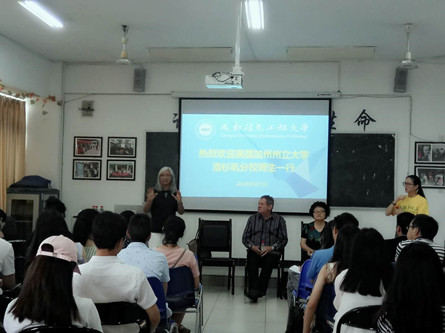 【本网讯】6月8日,美国加州州立大学洛杉矶分校健康与人文服务学院院长Ron Vogel教授、社会工作系系主任Evaon Wong-kim教授、社会工作系Sivon Rhee教授一行来九州(中国)龙泉校区进行了学术交流。Evaon Wong-kim教授做:“美国健康社会工作的角色功能及课程体系设置”的学术讲座,文化艺术学院社会工作师生60余人聆听了讲座。讲座由社会工作与社区发展研究所所长陈会全主持。