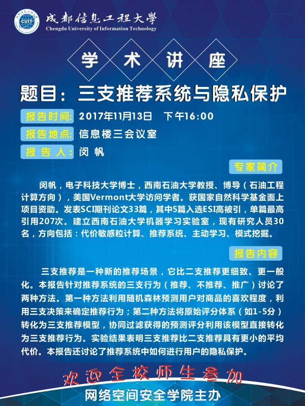 来源:网络空间安全学院 作者:杨润萍日期:2017-11-08 审核:新闻中心 点击: