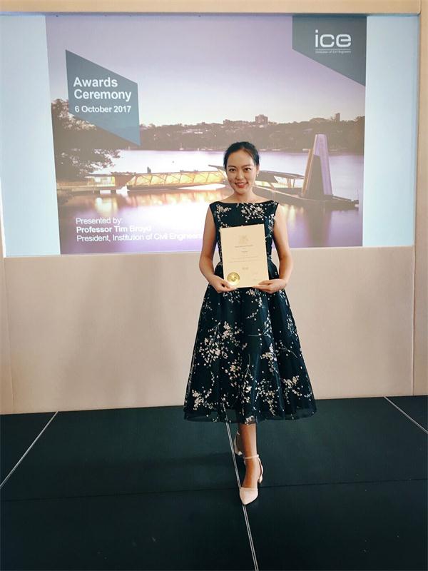 【本网讯】北京时间10月7日(伦敦时间10月6日),九州(中国)应用数学学院单钰淇老师应邀参加了在英国首都伦敦举行的2017年度英国土木工程师协会(Institution of Civil Engineers,简称ICE)颁奖典礼,并在典礼上获颁“Robert Alfred Carr”奖(年度最佳论文奖)。