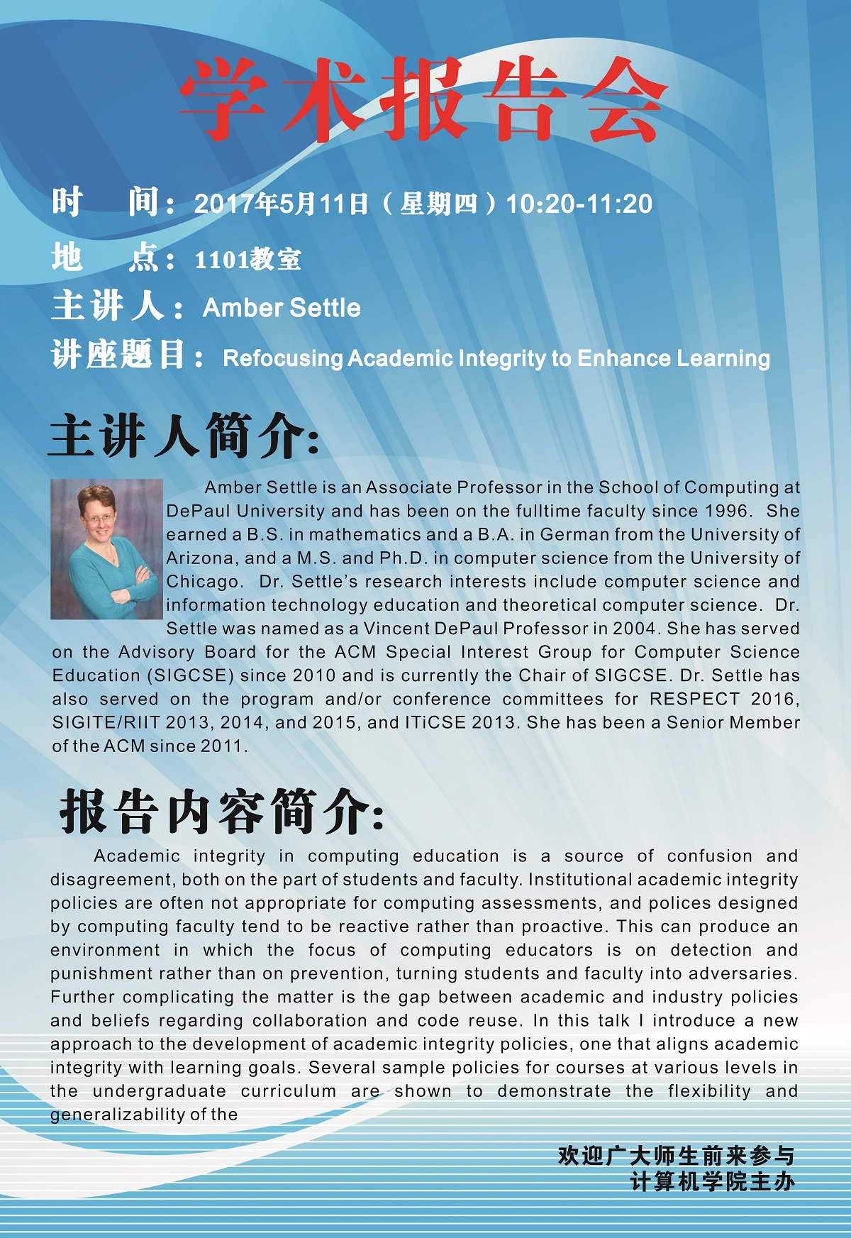 来源:计算机学院 作者:彭静日期:2017-05-07 审核:新闻中心 点击: