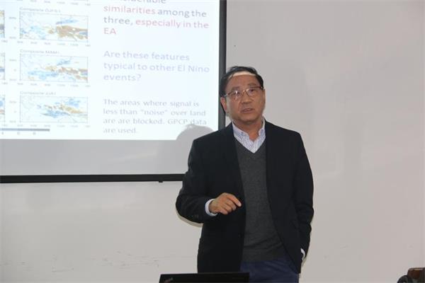 【本网讯】1月11日下午,美国夏威夷大学气象系Bin Wang教授应大气科学学院邀请,在气象楼310会议室作题为《2015-2016 super El Nino impact on Asian-Australian monsoon hydrological hazard》的学术讲座。大气科学学院部分教师和研究生参加此次讲座,讲座由吕世华教授主持。