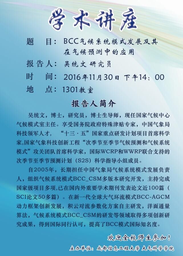 来源:大气科学学院 作者:尹欣日期:2016-11-29 审核:新闻中心 点击:
