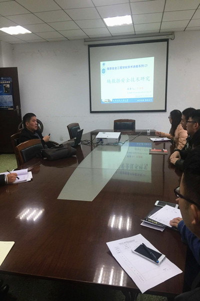 【本网讯】11月11日上午,信息安全工程学院万国根博士在三会议室作了题为“块数据安全技术研究”的学术讲座。学院部分教师和研究生参加了该讲座。