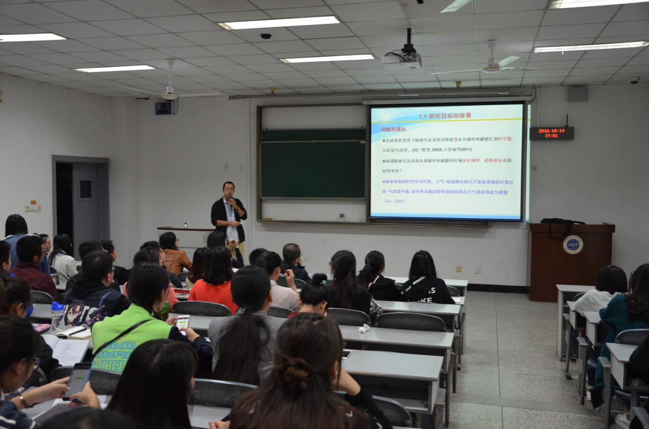 【本网讯】10月14日,大气科学学院第十期研究生学术论坛在1301教室举行。大气科学学院副教授文小航,博士后葛非,14级硕士研究生许田田、王珂受邀作学术报告,大气科学学院部分老师及研究生参加了此次论坛。
