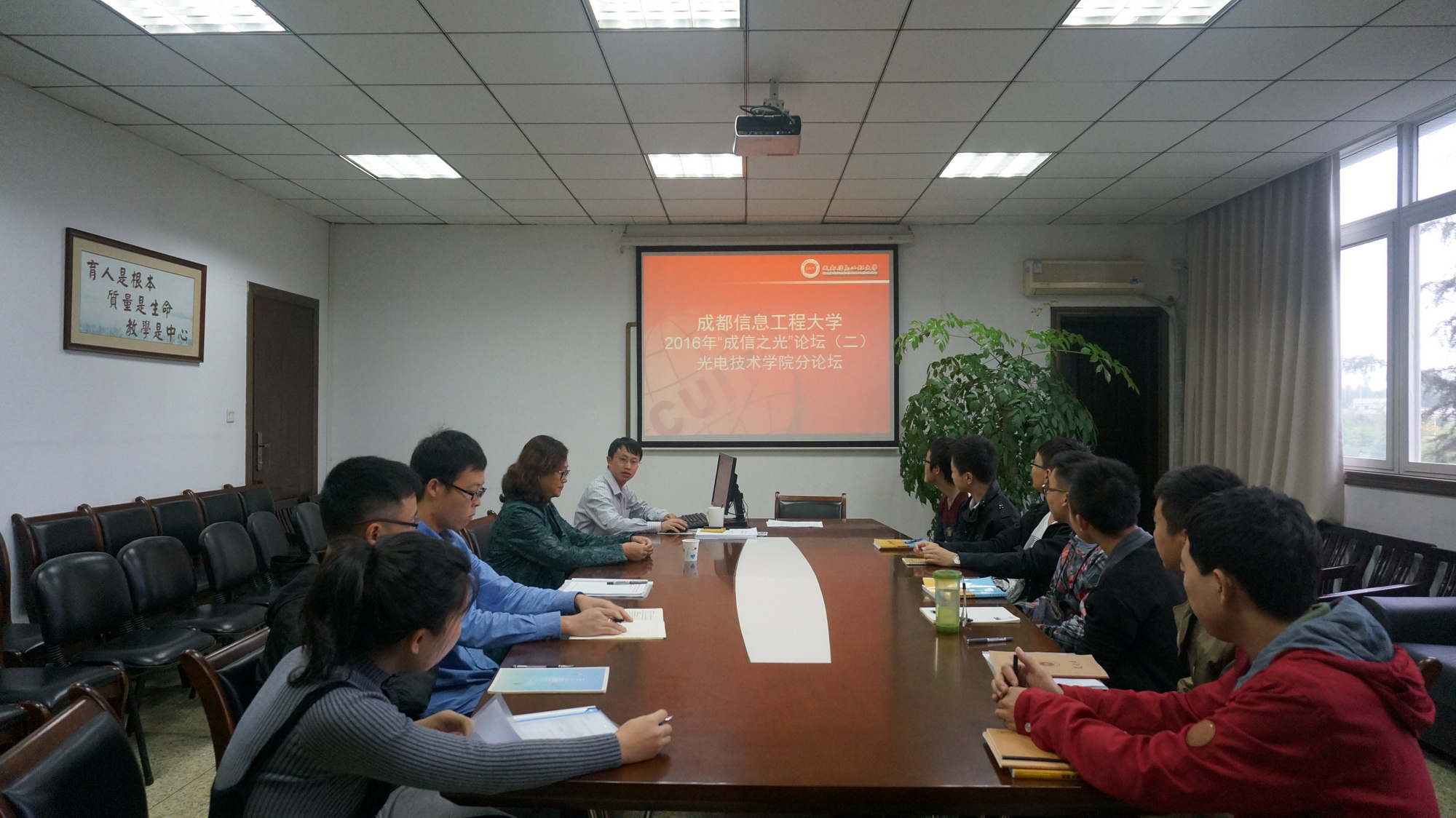 【本网讯】10月11日,由九州登录学生处主办、光电技术学院承办的2016年“成信之光”论坛(二)之光电技术学院专场在信息楼312会议室成功举办。光电技术学院副院长杨定宇教授,辅导员黄川蓉老师,光电技术学院办公室李红梅老师出席了本次论坛,光电技术学院全体在校研究生参加了此次论坛。论坛由黄川蓉主持。