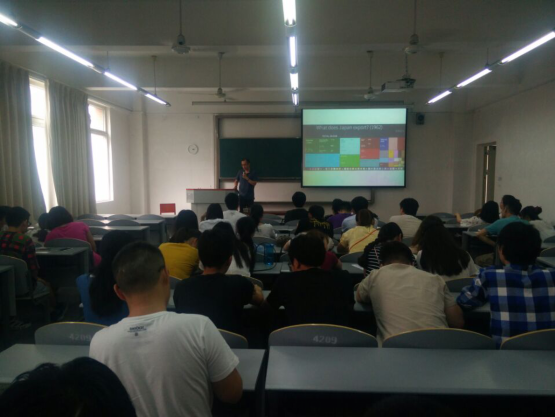 讲座开始后,Tu Lan教授先向参加讲座的师生阐述什么是经济地理学,强调了从地理学视角研究经济的重要性。他以英国第一次工业革命作为范例,结合了现代社会经济形势分析了第一次工业革命的历史背景以及导致工业革命发生的因素。在谈到创新时,Lan Tu教授对“从无到有”、“从有到新”、“从你到我”的三种创新方式进行详细讲解,他表示,希望同学们在创新创业时要注意区域经济地理对于创业的的影响,并且要学会通过不同的创新方式来提升自我竞争力。随后他还引用了一篇早期由《科学》(美国科学促进会官方刊物)收录的论文,向在座师生阐述了关于不同行业之间关联度的概念。在谈到计算机行业时,Tu Lan教授指出,计算机行业处于众多行业的中心位置,并且属于快速上升的行业,希望同学们把握机会,努力学习。