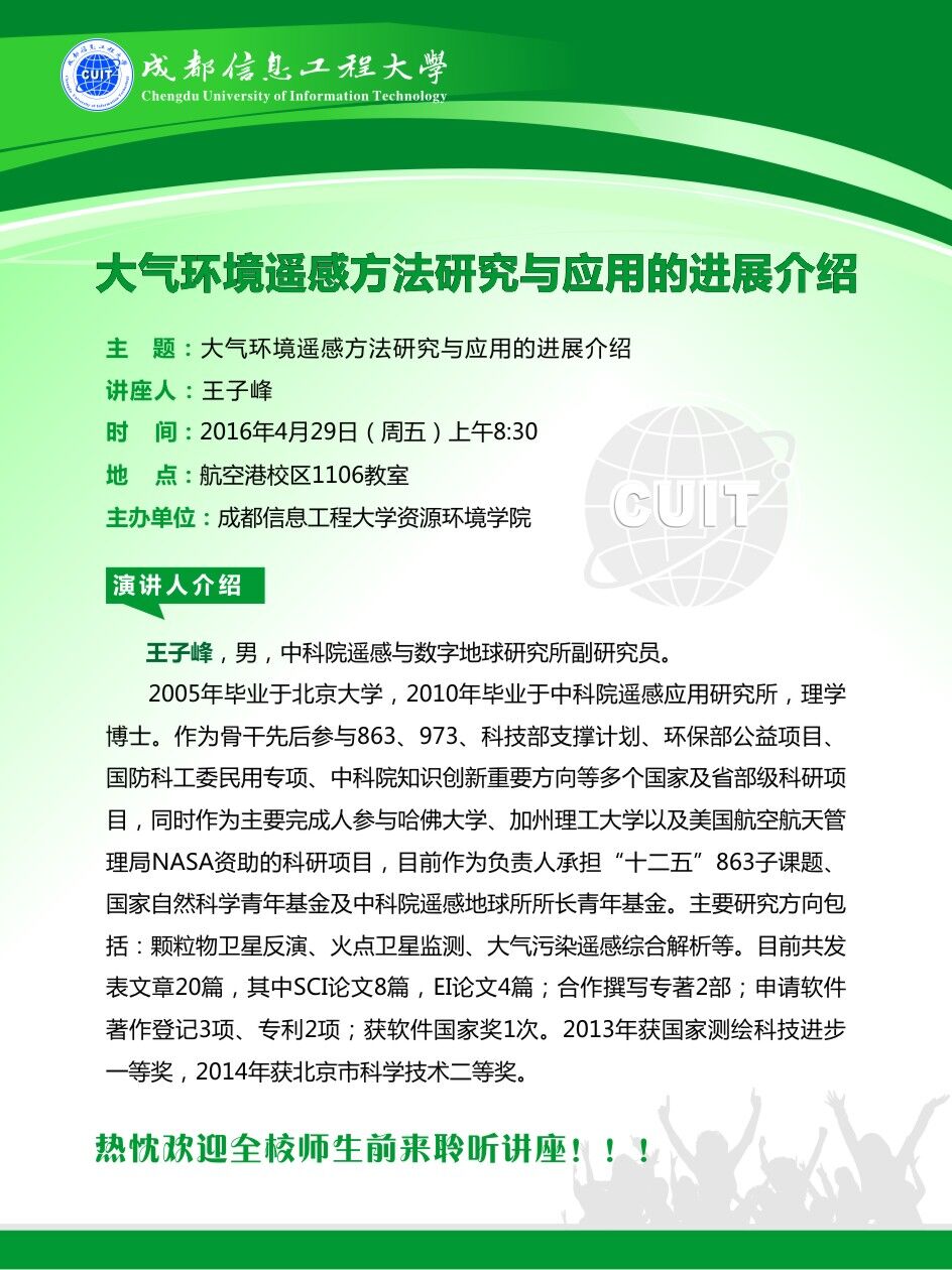 【学术预告】大气环境遥感方法研究与应用的进展介绍