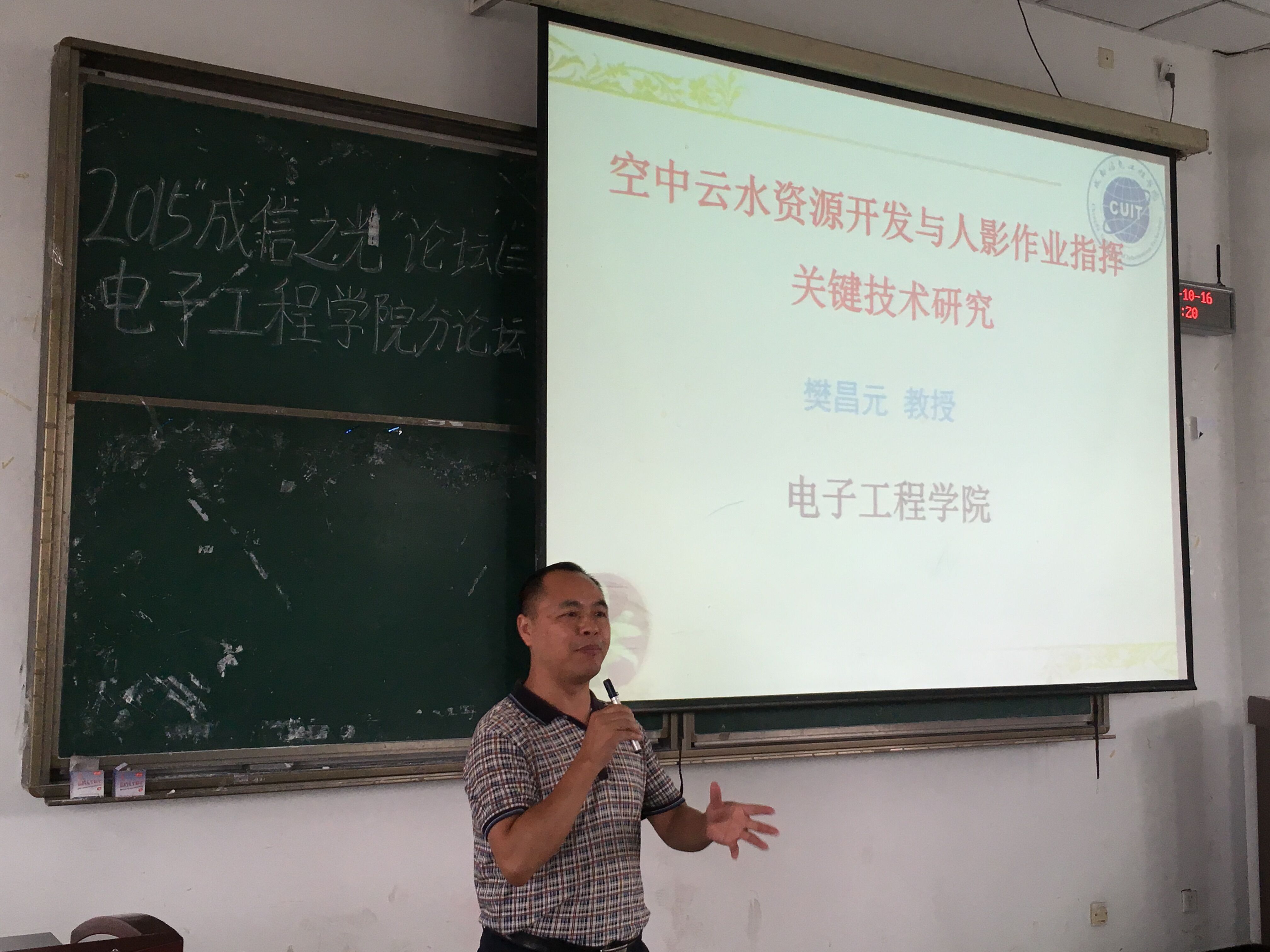 【本网讯】10月16日上午,“成信之光”论坛(三)之《空中云水资源开发与人影作业指挥关键技术研究》讲座在九州(中国)航空港校区4313教室顺利举行。本次论坛主讲为电子工程学院樊昌元教授。电子工程学院部分教师、在校研究生及部分本科学生参加了此次讲座。