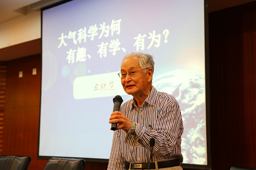 丑院士围绕大气科学“有趣”、“有学”、“有为”三个特点进行阐述,旁征博引、深入浅出,全面系统地讲解了大气科学学科的相关入门知识,并针对大气科学的重要性、与气象学科相关的前沿科技领域、自然灾害对人类活动的影响等几个方面的问题,图文并茂、生动有趣地向在座师生细致讲解。他认为,大气科学是一门直接面对大自然的自然学科,正所谓“气象万千”,我们对此做出预测并加以验证,这是件十分有趣的事。随着人类社会经济科技的飞跃发展,我们更需要不断地学习和掌握卫星、雷达、全球定位系统(GPS)和运用巨型计算机进行数值模拟等高科技手段进行大气科学的研究。