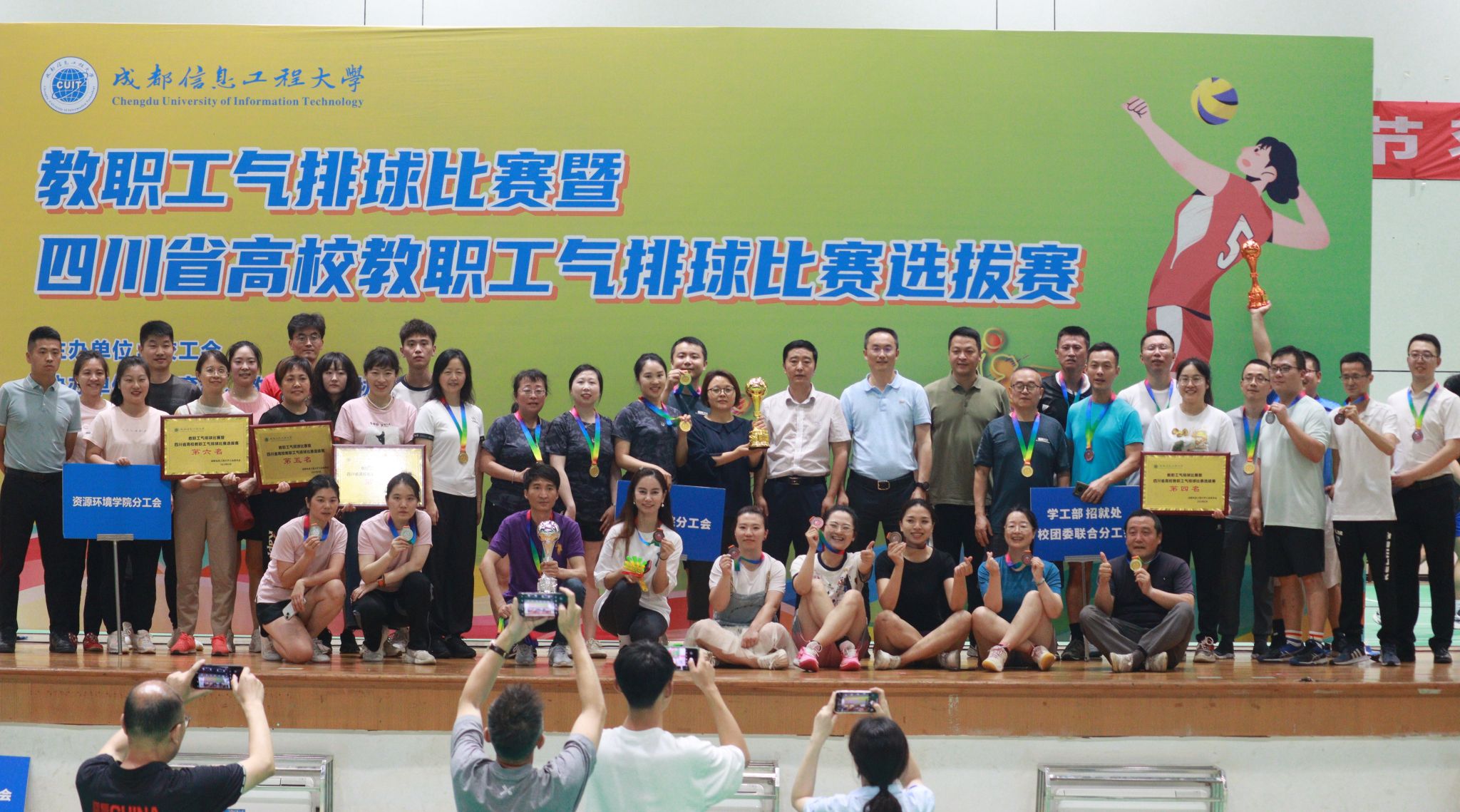 【本网讯】5月17日,2024年学校教职工气排球比赛暨四川省高校教职工气排球比赛选拔赛颁奖仪式在航空港校区体育馆举行。学校副校长朱明,体育部主任程艺、校工会委员会常务副主席周波、校团委副书记倪涛为获奖队伍颁奖。