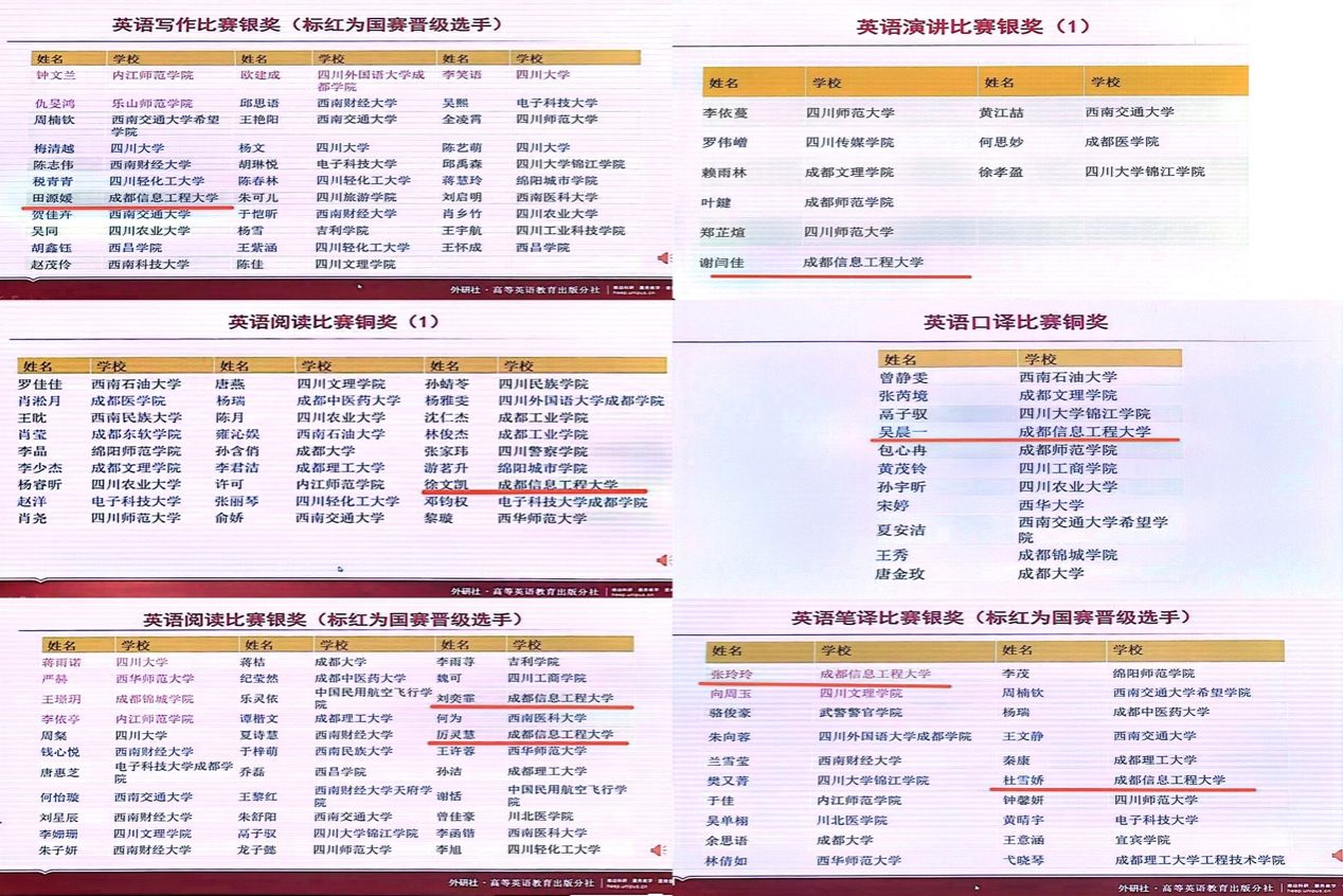 2023“外研社•国才杯”“理解当代中国”四川省大学生外语能力大赛包括写作、阅读、笔译、演讲、口译五大赛事。大赛前身为“Uchallenge”四川省大学英语挑战赛,凭借其权威性、学术性和专业性,大赛自2018年起连续六年入选教育部中国高等教育学会发布的“全国高校大学生竞赛榜”,被全国多地教育主管部门纳入省厅级比赛项目。