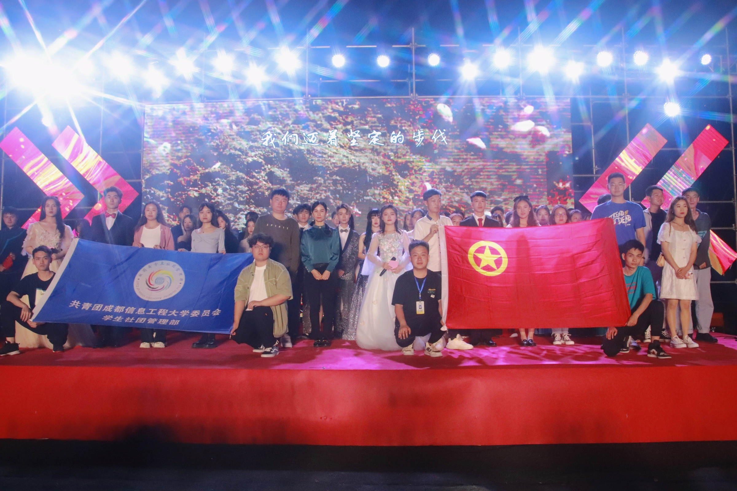 【本网讯】5月7日晚,由学校党委学生工作部、校团委主办,校团委学生社团管理部、校团委文化艺术部承办的“以青春之名,庆百年华诞”第16届社团文化月闭幕式文艺晚会于航空港校区第一田径场圆满举行。