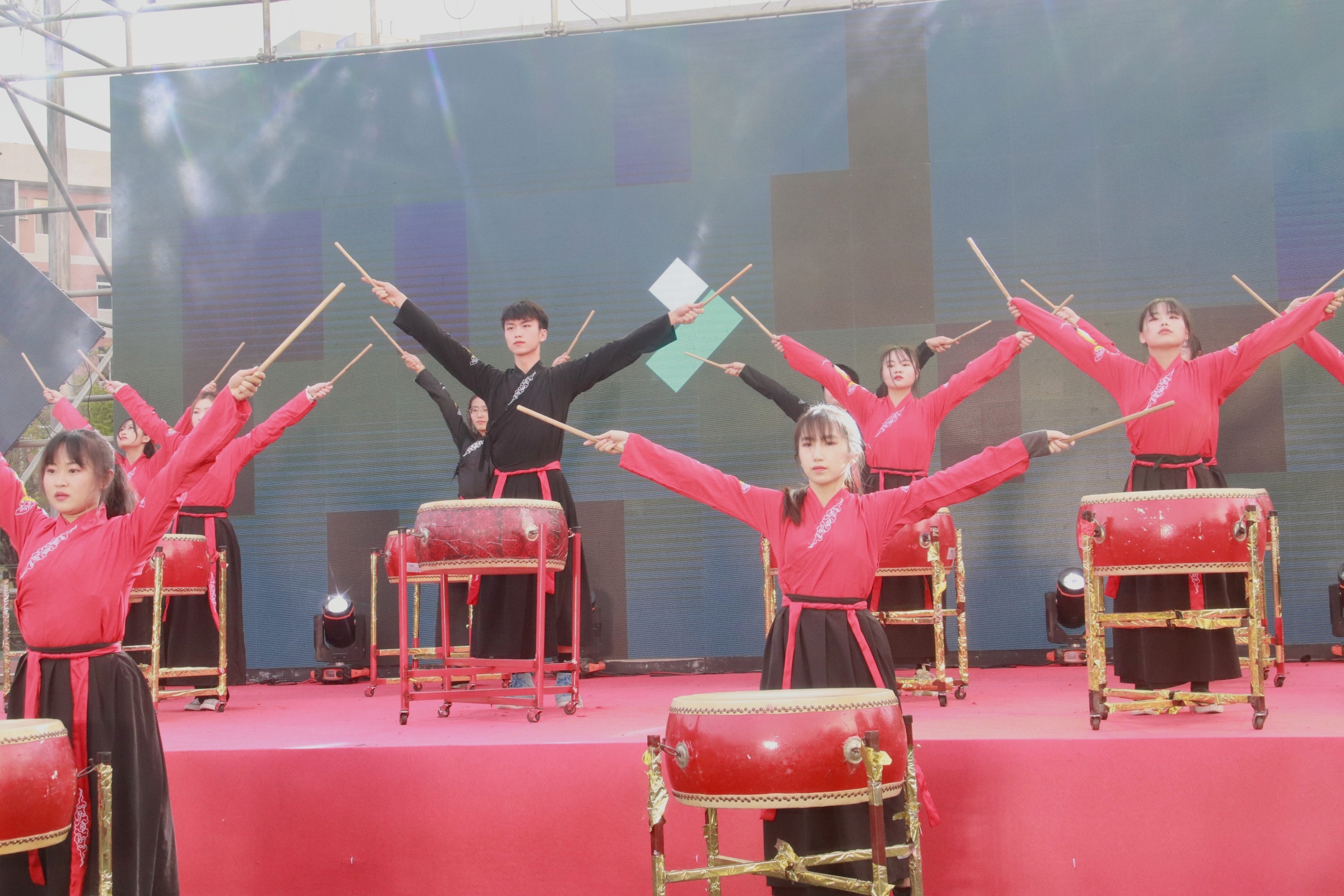 一阵激昂的鼓声拉开了本次晚会的序幕,吸引了全场的目光。振奋人心的鼓声不仅代表着我们成信大学子洋溢的青春,更表达了我们对党百年华诞的祝福。