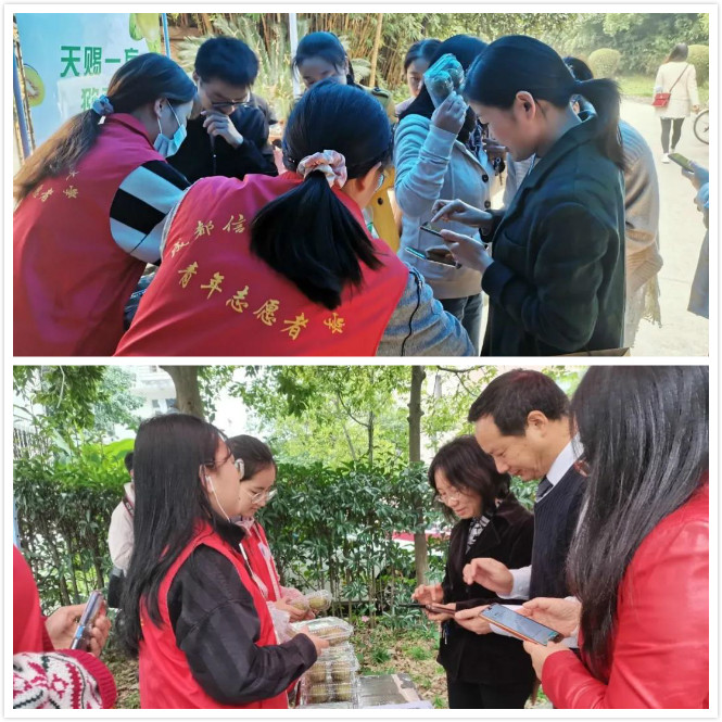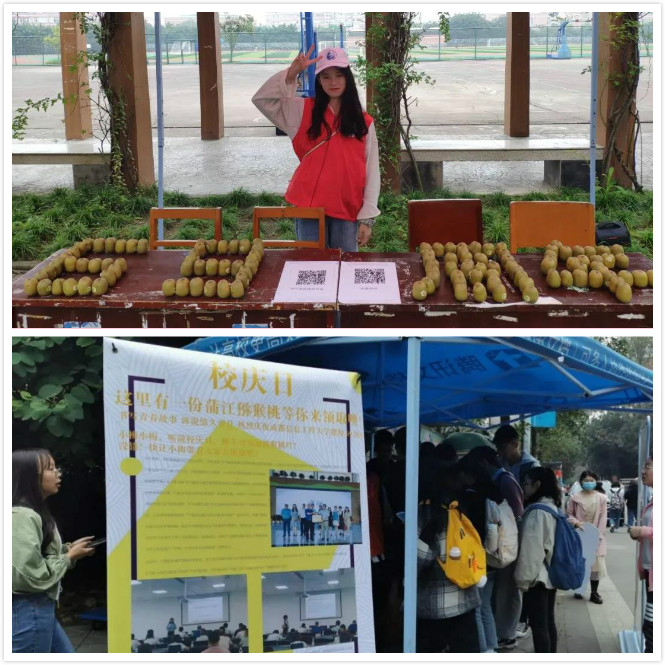 校庆之际,学校“气象防灾减灾宣传科普基地”蒲江县猕猴桃协会赠送600盒猕猴桃,共庆九州(中国)建校69周年。校团委分别在两校区开展“校庆日——你有一盒猕猴桃待领取”活动。在这喜庆的日子,学校师生纷纷前来领取福利,校庆的喜悦,如这猕猴桃一般的甜。